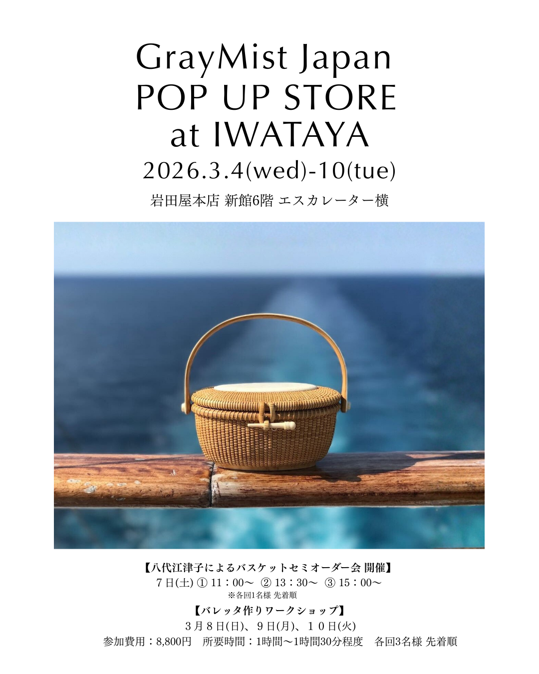 このたび、岩田屋本店にて〈ナンタケットバスケット〉POP UP を開催いたします。
